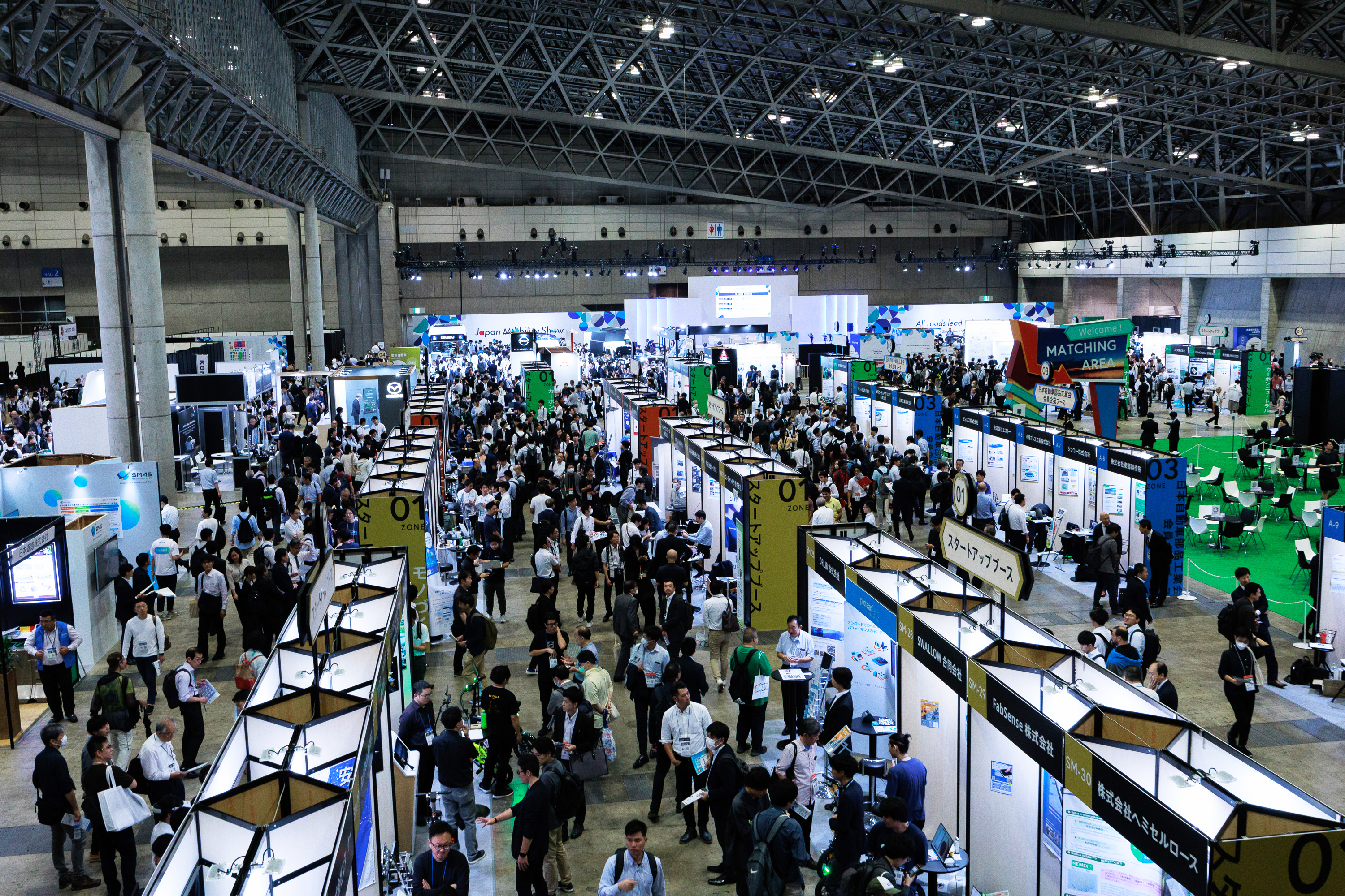JAPAN MOBILITY SHOW BIZWEEK 2024は、「未来を創る、仲間づくりの場」としてモビリティ関連企業と次世代を担うスタートアップ企業による、共創を生み出すためのビジネスイベントとして開催し、スタートアップ企業145社(カーボンニュートラル:28社、サプライチェーン:19社、ものづくり:40社、トランスフォーメーション:58社)、事業会社や日本自動車部品工業会会員、自工会会員の58社が参加しました。出展者の皆さまをはじめ、関わっていただいた全ての皆さまに、心より御礼申し上げます。