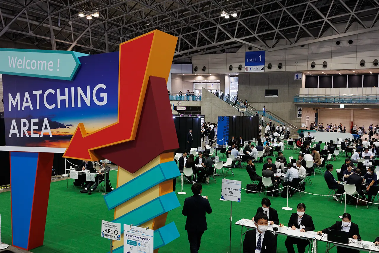本年8月20日より稼働を始めたオンラインコミュニケーションツール「Meet-up Box」は、出展企業のシーズやニーズ、事業課題の把握、商談予約など、充実した機能と使い勝手の良さにより、事業共創の創出に大きく寄与しました。特に、会期前にお互いのニーズがしっかりと把握できるよう、企業同士の双方向コミュニケーションや、会期中に対面で商談を行うためのビジネスマッチングエリアの事前予約ができる機能が好評をいただきました。このツールを通じて848件のマッチングが成立し、モビリティ産業に関わる国内最大の「マッチングプラットフォーム」を目標として、会期終了後も継続してモビリティ産業と共に歩む仲間の新規登録を受付し、更なる共創の芽を育む土壌として広がっていきます。「豊かで夢のあるモビリティ社会」の構築に向けて、モビリティ産業を拡張する事業共創のための様々な支援の継続を検討します。
